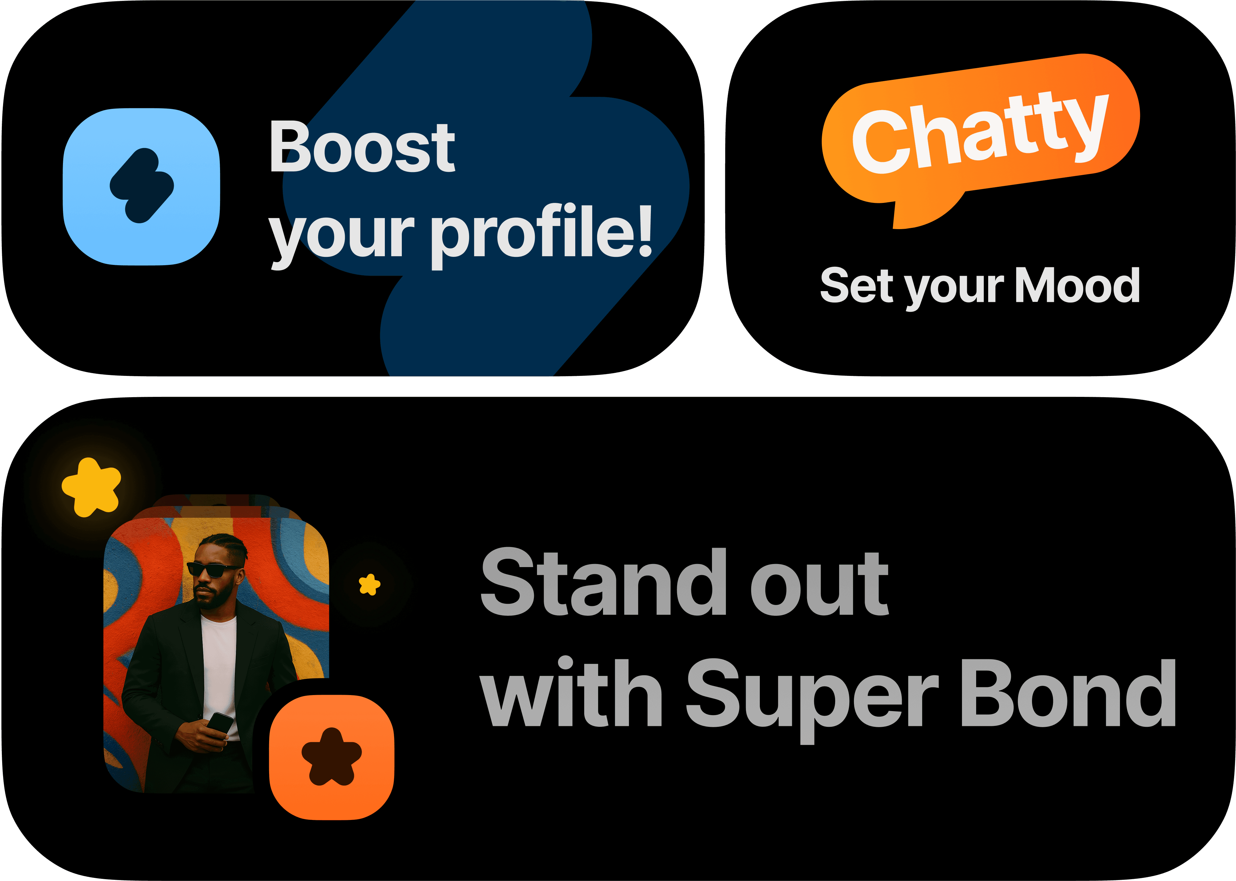 Choose when to be anonymous, when to reveal more, whether to chat first or match first, and when you want to appear.